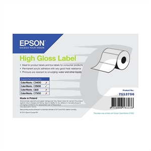 Epson 7113756 etiqueta de alto brilho 76 mm x 51 mmEstas etiquetas Epson 7113756 não utilizam tinta, pois funcionam com laser térmico, pelo que não é necessário adquirir mais nada.Características:Cor: brancaTamanho: 76mmComprimento: 51mmTipo de adesivo: permanente Recomendado para: etiquetas de diferentes comprimentos, adapte o comprimento à etiqueta que necessitar. Resistente a: manchas, agua e liquidos, pelo que é adequada para utilização em exterior.Produto original: Epson 7113756.
