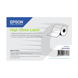 Epson 7113763 etiqueta de alto brilho 210 mm x 297 mmEstas etiquetas Epson 7113763 não utilizam tinta, pois funcionam com laser térmico, pelo que não é necessário adquirir mais nada.Características:Cor: brancaTamanho: 210 mmComprimento: 297 mmTipo de adesivo: permanente Recomendado para: etiquetas de diferentes comprimentos, adapte o comprimento à etiqueta que necessitar. Resistente a: manchas, agua e liquidos, pelo que é adequada para utilização em exterior.Produto original: Epson 7113763.